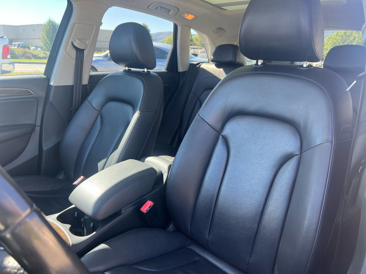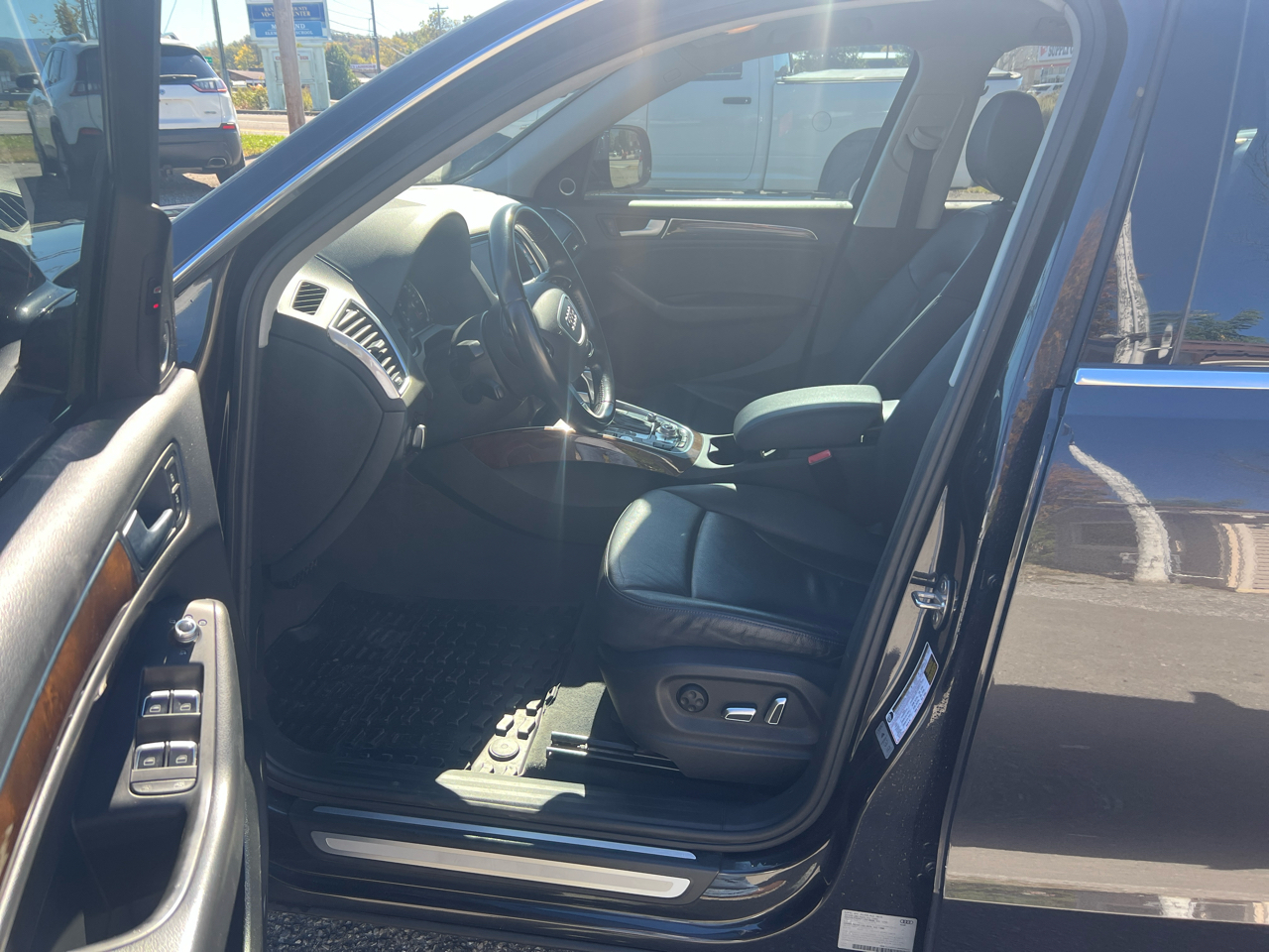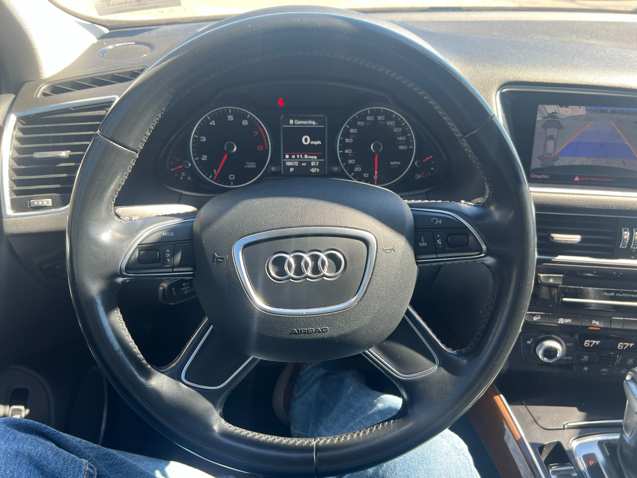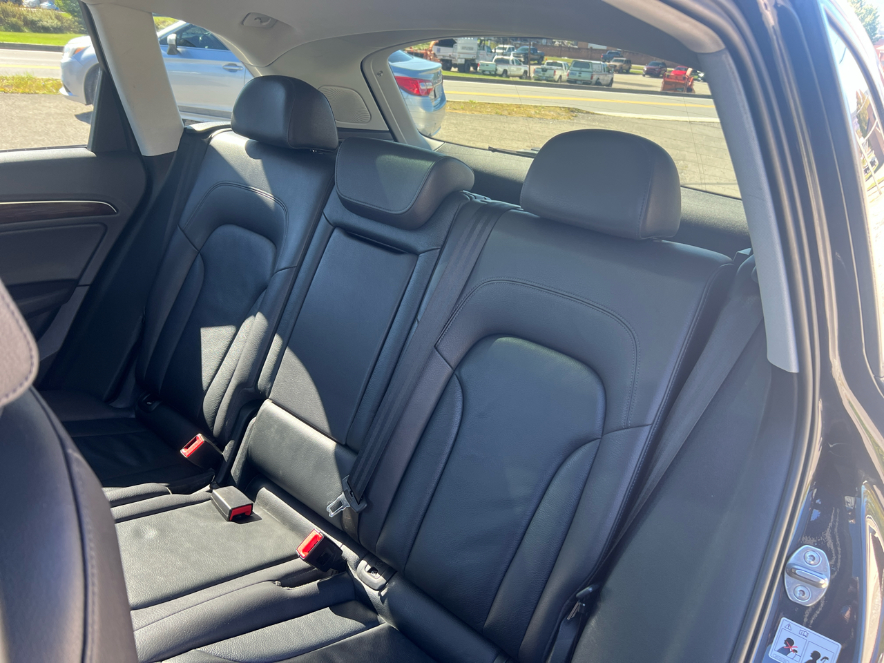 Looking for a sleek and stylish ride that offers both power and luxury? Feast your eyes on this sporty Black 2017 Audi Q5! With its 2.0 TFSI 4 Cylinder 220 HP engine under the hood, this beauty is ready to take you on exhilarating adventures. The full-time all-wheel drive ensures excellent traction no matter the road conditions, while the electric power-assist speed-sensing steering provides a smooth driving experience. The exterior boasts a clearcoat paint finish, a power sunroof for soaking up the sun, and front and rear fog lamps for added visibility. Slip inside the cabin and you'll find yourself surrounded by comfort and convenience, with 3-step heated front seats, leather steering wheel, and a power liftgate for easy access to the cargo area. Safety features include side impact beams, airbag occupancy sensors, and rear child safety locks for peace of mind on the road. Get ready to turn heads and enjoy the drive in this fantastic Audi Q5!