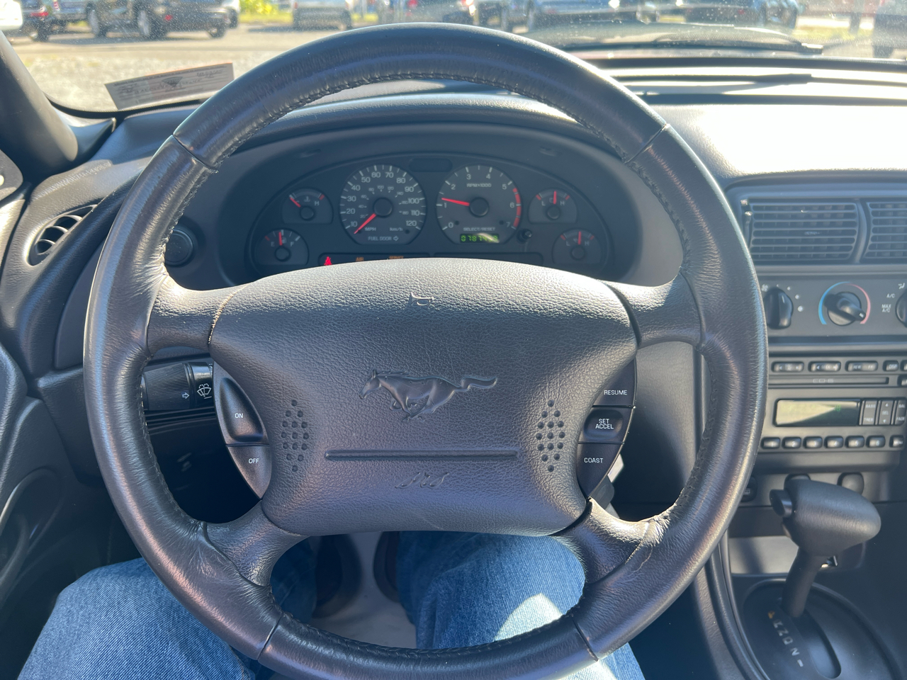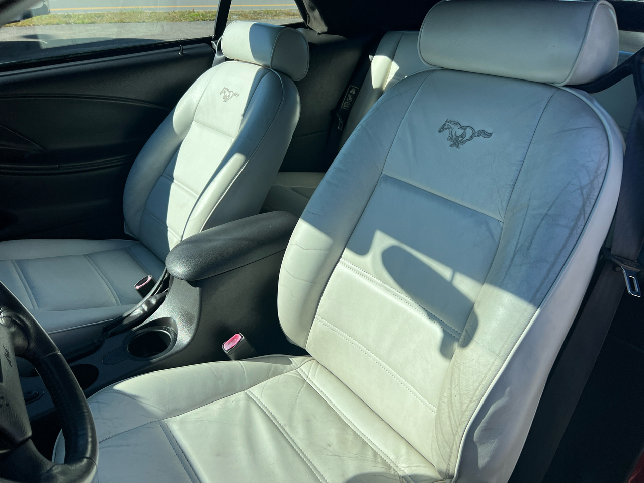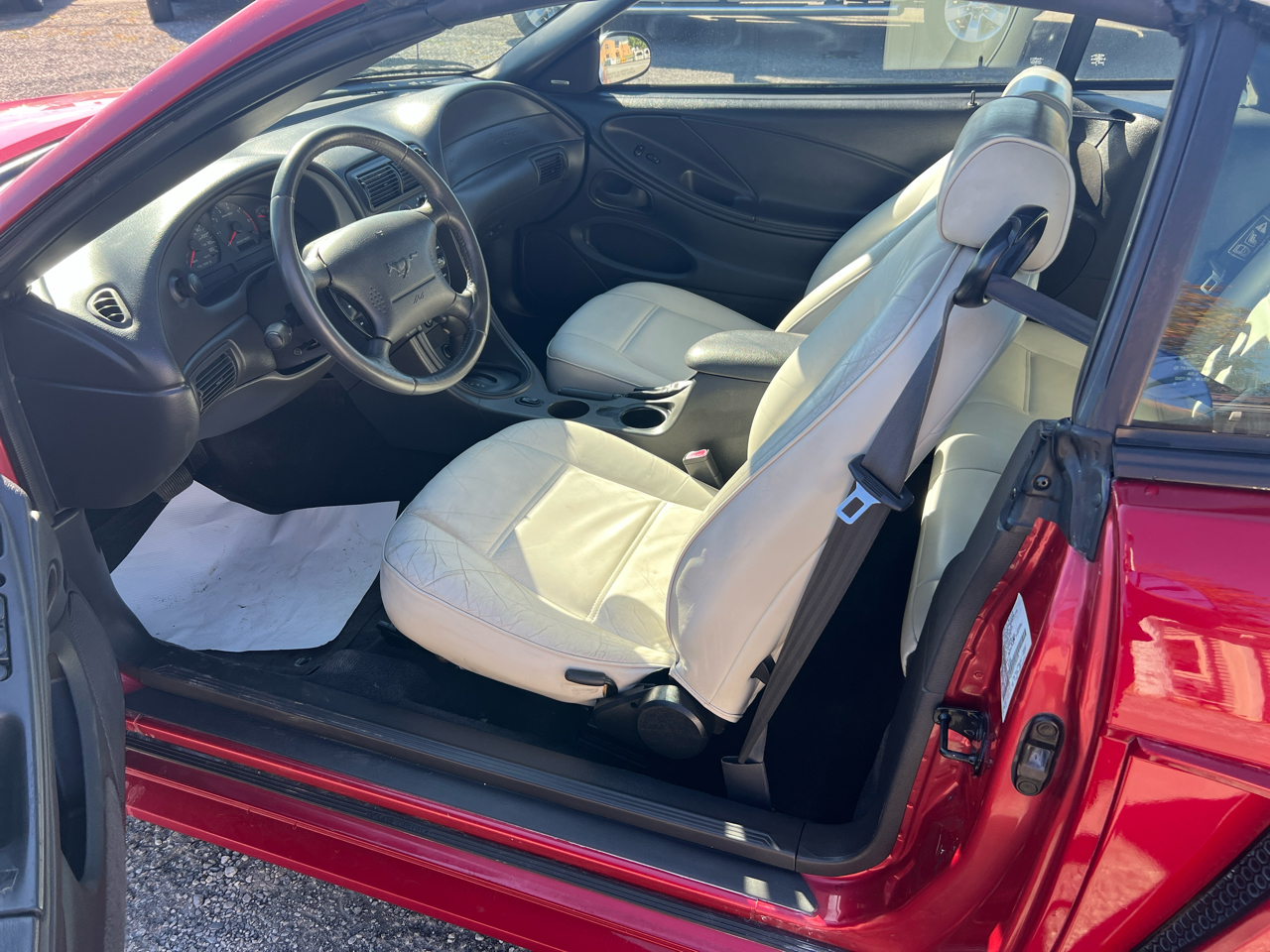 Get ready to hit the road in style with this fiery red 2002 Ford Mustang! With a powerful 3.8L SMPI V6 engine under the hood, you'll feel the thrill of the rear-wheel drive as you cruise down the highway. The convertible top retracts with just a touch of a button, perfect for those sunny days ahead. This Mustang is not only a head-turner with its sleek design and color-keyed accents, but it also provides a comfortable ride with its power driver seat and air conditioning to keep you cool. The interior features color-keyed carpeting, a tilt steering wheel, and dual illuminated vanity mirrors for added convenience. Safety is a top priority with Second Generation airbags and active restraint safety belts. Whether you're running errands around town or embarking on a road trip adventure, this 2002 Ford Mustang is the perfect blend of performance, style, and comfort all in one package. Say goodbye to boring drives and hello to excitement behind the wheel of this classic American muscle car!