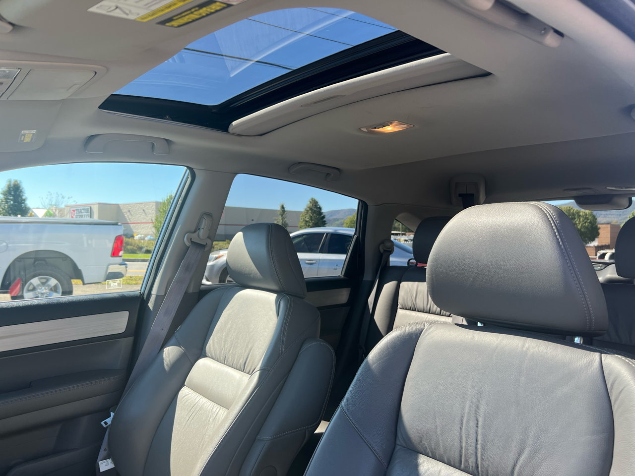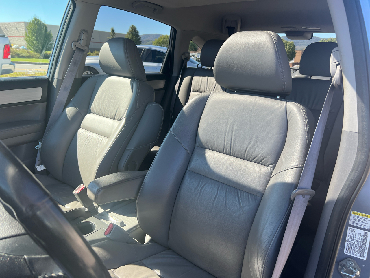 With its chrome grille, one-touch power moonroof, and multi-reflector halogen headlamps, this CR-V has a modern and sophisticated look. The interior boasts reclining leather heated front bucket seats, a dual-zone auto climate control system, and a conversation mirror with a sunglasses holder for added convenience.